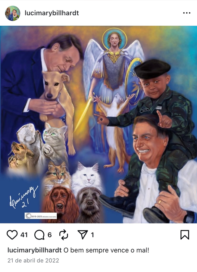 4 O bem sempre vence o mal! (Good always triumphs over evil!), painting by Lucimary Billhardt, 2022, promoted through her Instagram account, screenshot