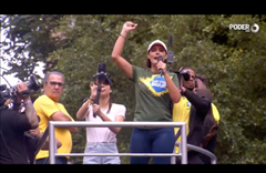 8 In April 2025, Michelle Bolsonaro calls for new protests, holding a lipstick and asking for amnesty for the invaders of January 8, 2023, Assista ao discurso de Michelle Bolsonaro no ato de 6 de abril na Paulista, in: Youtube, screenshots